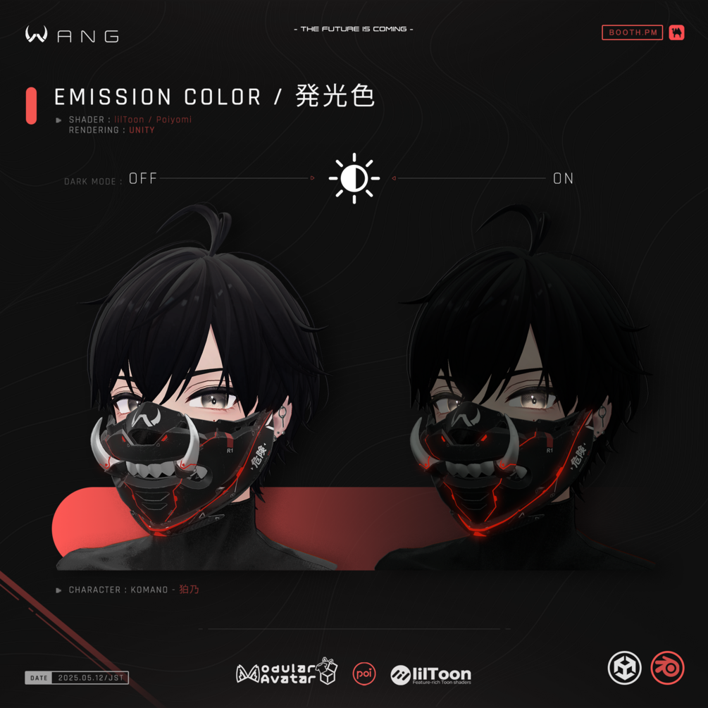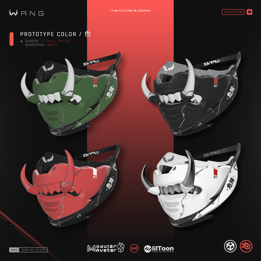 The mask is designed to be modular and customizable. Each part can be disassembled and reassembled in various ways, allowing users to mix and match colors and components. This flexibility gives the mask a dynamic personality — adapting to the wearer’s style and creating endless possibilities of expression.